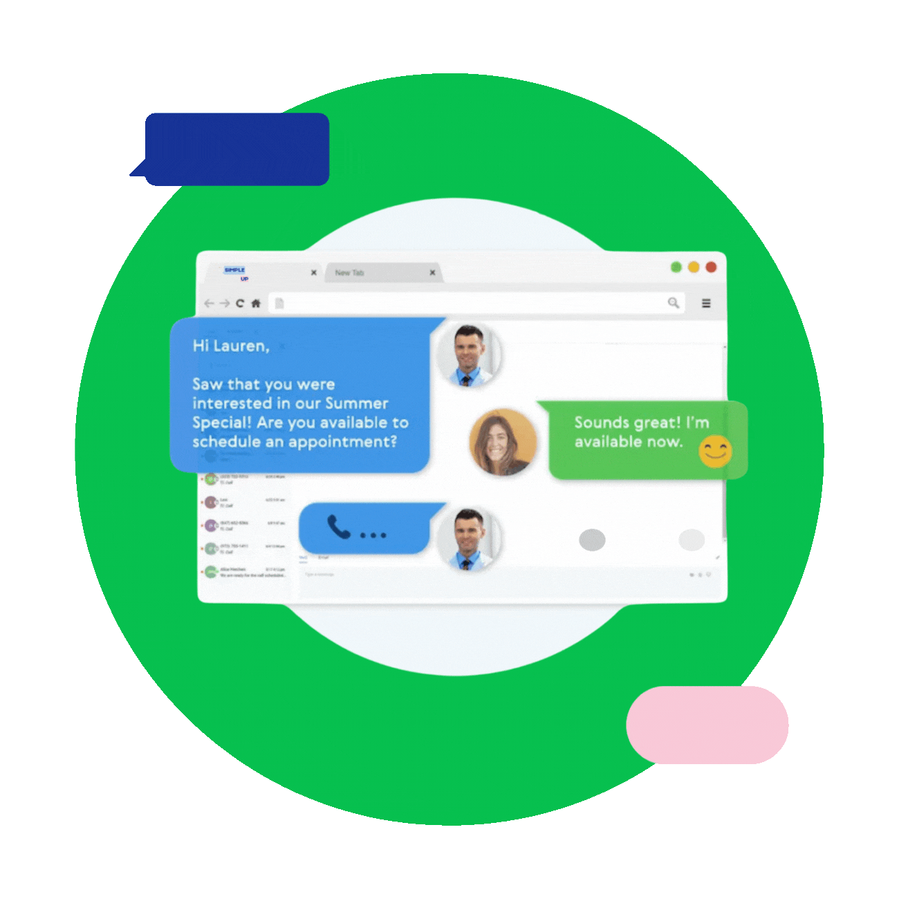 Con inteligencia artificial integrada, SimpleUp gestiona conversaciones, da seguimiento a tus prospectos y mantiene tu agenda llena—¡sin que tengas que mover un dedo!